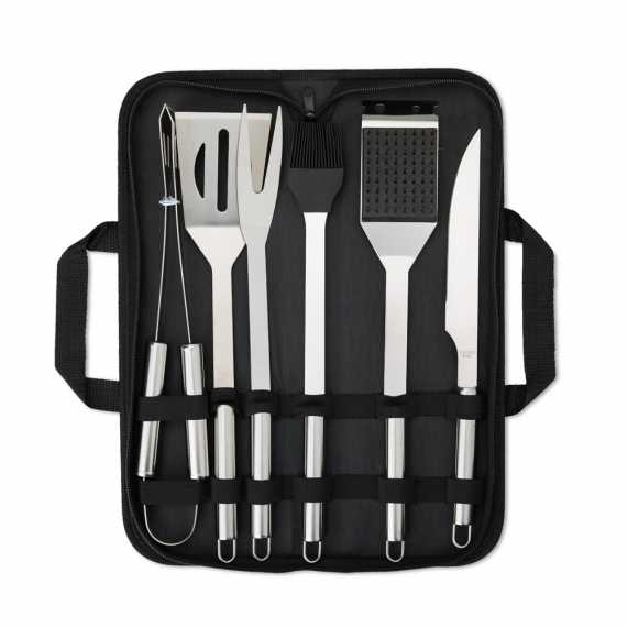 Se você é apaixonado por churrasco e gosta de preparar carnes deliciosas, este kit é a escolha perfeita! Nosso kit churrasco possui 6 peças essenciais de alumínio, garantindo um manuseio preciso e incluindo uma escova para manter a grelha sempre limpa. O kit é composto por pegador, espátula, pincel, garfo e escova para grelha com dois furos para pendurá-la onde desejar. Além disso, as peças vêm acomodadas em um estojo de nylon com alça, tornando o kit fácil de transportar e proteger. Esse kit é tudo o que o seu cliente precisa para preparar um churrasco saboroso e com eficiência.