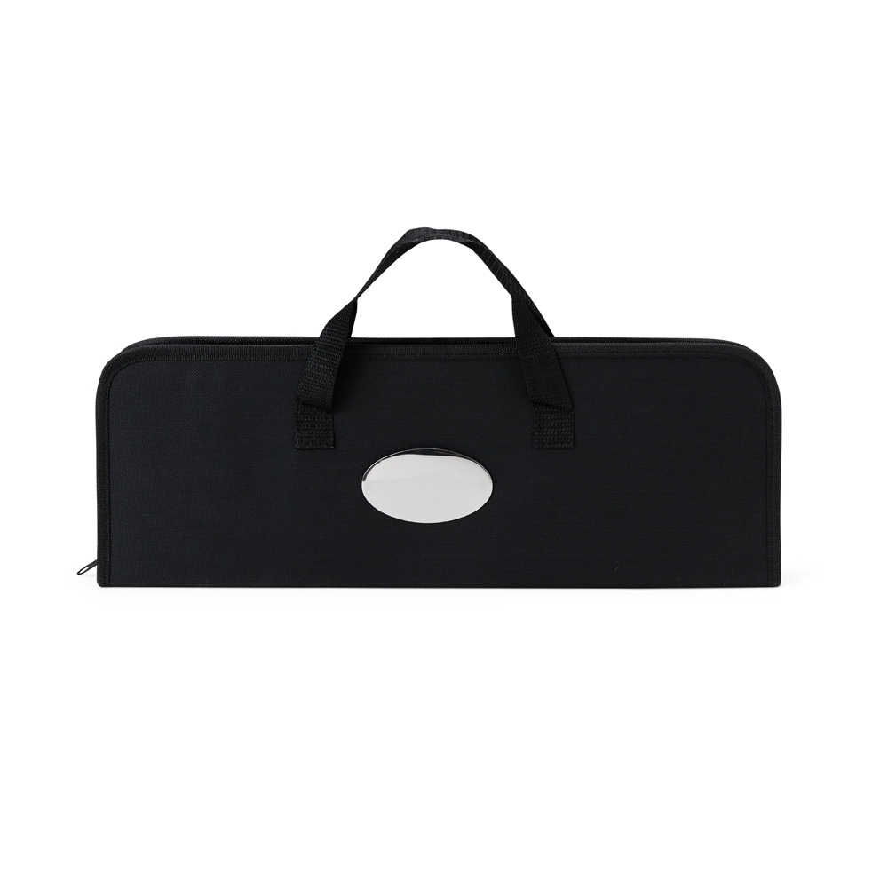 O kit completo para um churrasco perfeito! Este conjunto inclui uma faca de 6,5 polegadas, garfo trinchante, pegador, espátula, chaira e 4 pegadores de petiscos, unindo funcionalidade e qualidade em cada peça. Feitas em aço inoxidável, as peças contam com cabos de madeira, que adicionam um toque rústico e elegante ao design. Tudo isso vem acomodado em um prático estojo de nylon com alças, ideal para transporte e organização de cada item.