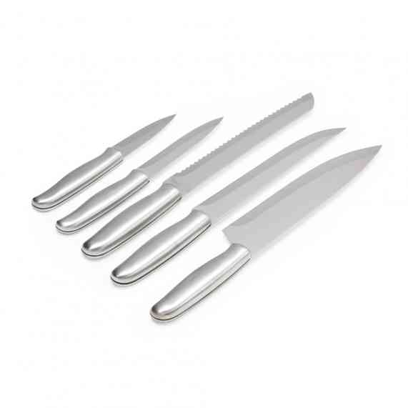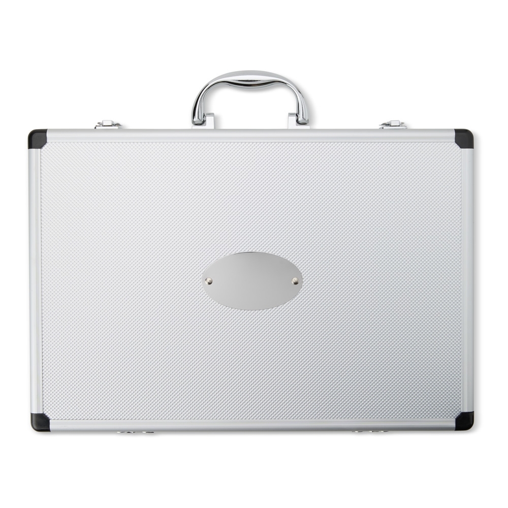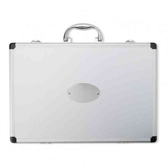 A solução ideal para quem valoriza qualidade nos cortes e organização na cozinha. O kit inclui 5 facas em aço inoxidável, com diferentes tamanhos, perfeitas para uma experiência gourmet. Acompanha uma maleta de alumínio texturizado, com interior revestido de veludo e duas travas que garantem maior segurança. Além disso, a maleta oferece espaço para personalização, tornando o kit ainda mais exclusivo.