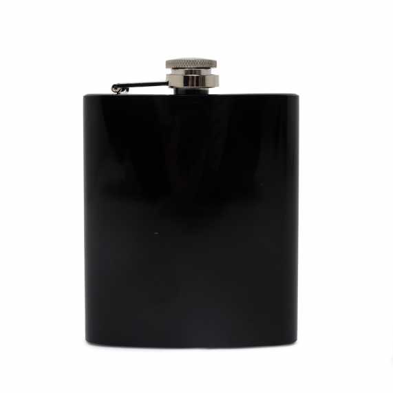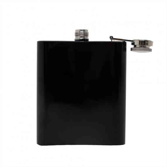 Porta whisky 7oz em aço inoxidável com acabamento brilhante.