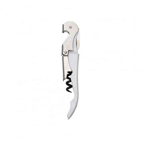 Saca-rolhas metálico de 2 estágios com acabamento fosco. Contém abridor de garrafa, lâmina de corte e saca-rolhas.