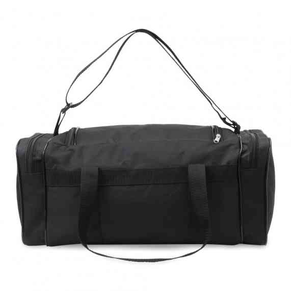 Bolsa de nylon 23 litros com quatro compartimentos, possui alça transversal regulável e alças de mãos.