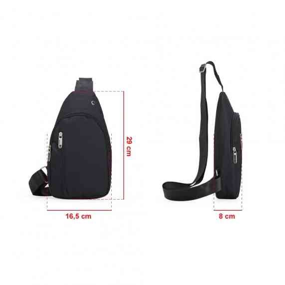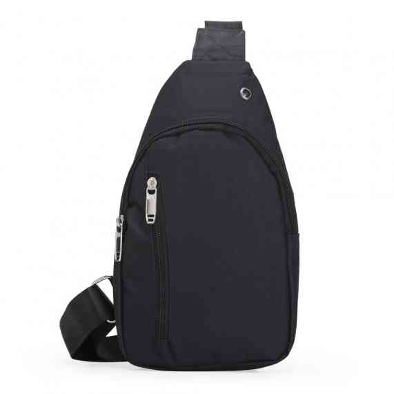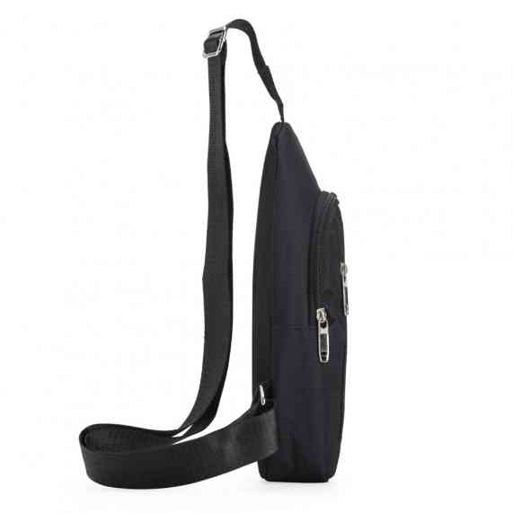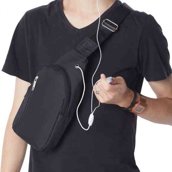 Bolsa de ombro em nylon com 2 compartimentos e bolso interno, possui saída para fone de ouvido. Alça transversal com opção de regulagem.