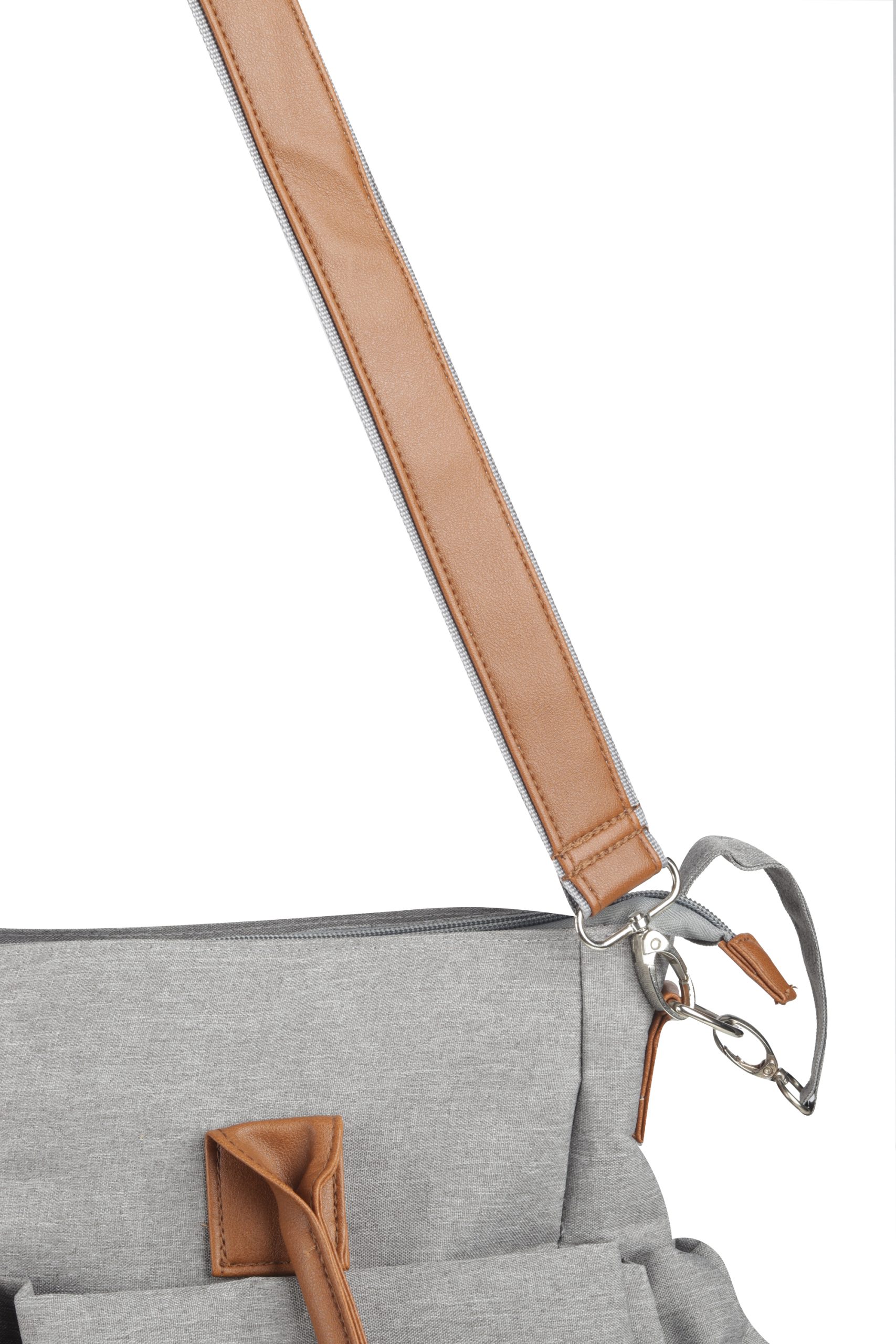 Bolsa Multifuncional confeccionada em poliéster e PU, ideal para o dia a dia. Conta com 6 compartimentos externos com botão de ímã, sendo um deles com detalhe em zíper. Possui alça de ombro ajustável em poliéster com detalhes em PU, alça de mão em PU e suporte para carrinho de bebê. O interior é totalmente forrado em nylon, oferecendo 4 divisórias internas e um amplo compartimento principal para máxima organização. A base da bolsa é reforçada com PU, garantindo durabilidade e resistência.
