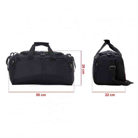 olsa de viagem de 28 litros em poliéster oxford resistente à água com quatro compartimentos. Contém alça de mãos com suporte de juntura, bases antiderrapantes e acompanha alça transversal com suporte de apoio para ombro.