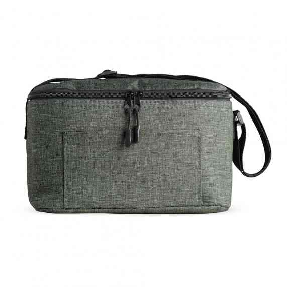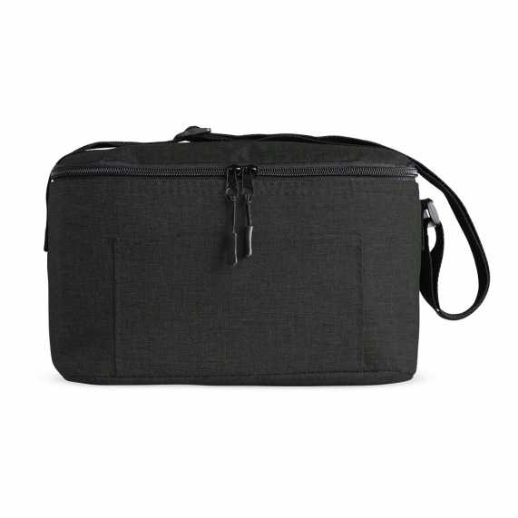 Bolsa térmica 6 litros de poliéster. Contém bolso frontal com zíper e alça transversal regulável em nylon (não removível).