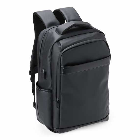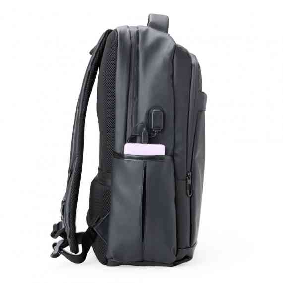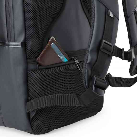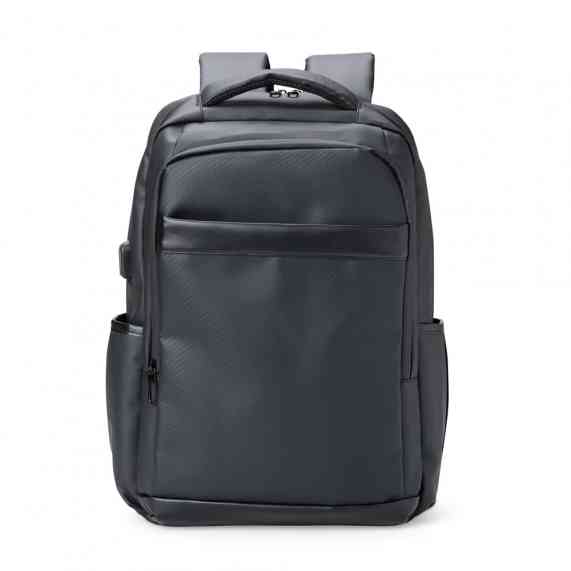 Nossa mochila de 39 litros combina funcionalidade e conforto! Feita em couro sintético resistente à água e com design inteligente, é perfeita para impressionar no mundo corporativo. Conta com quatro compartimentos estratégicos: um frontal, outro com bolsos e divisórias para documentos e canetas, um compartimento antifurto para proteger os itens mais valiosos e um principal, com espaço para notebooks de até 15,6" e entrada para cabo USB. Além disso, possui plaquinha para personalização exclusiva, dois bolsos laterais, alças reguláveis e acolchoadas que distribuem o peso de forma equilibrada, acabamentos refletivos e uma parte traseira acolchoada, garantindo mais conforto. Para completar, conta com engate para malas de viagem, sendo a parceira ideal além do dia a dia do trabalho.