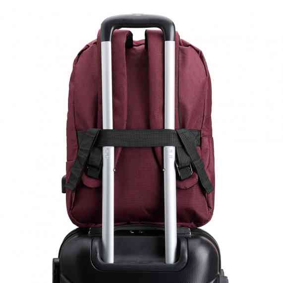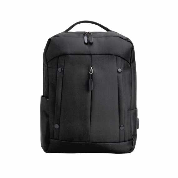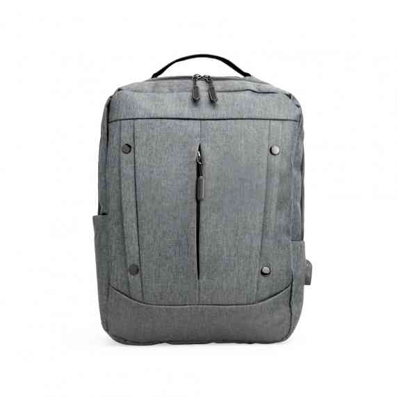 Mochila de nylon 21 Litros com dois compartimentos, sendo o principal com bolso para notebook 15,6. Com divisórias internas para acessórios, a mochila possui bolso lateral, suporte externo USB e alça para engate em malas de viagem.