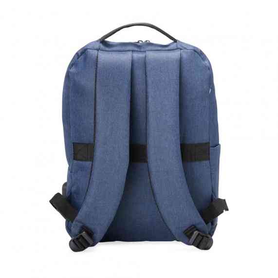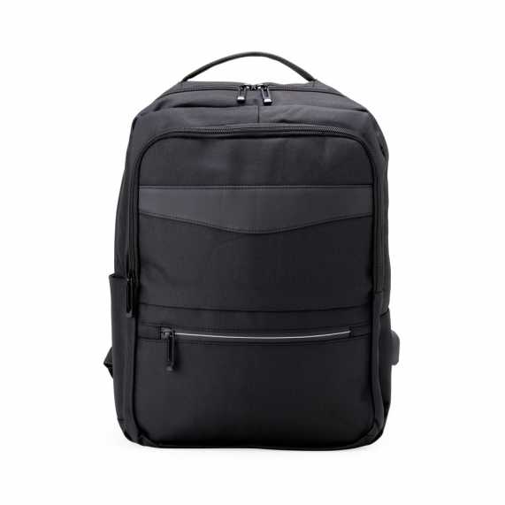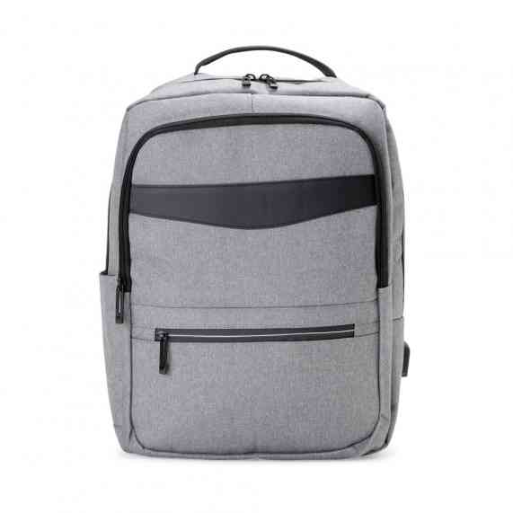 Mochila de nylon 22 Litros com detalhes em couro sintético e três compartimentos, sendo o principal com bolso para notebook 15,6. Mochila possui bolso lateral e suporte externo usb.