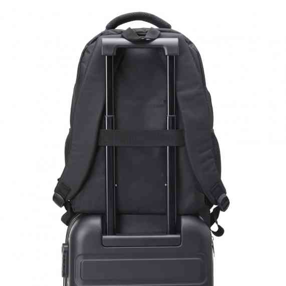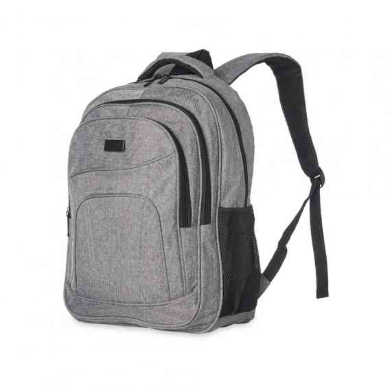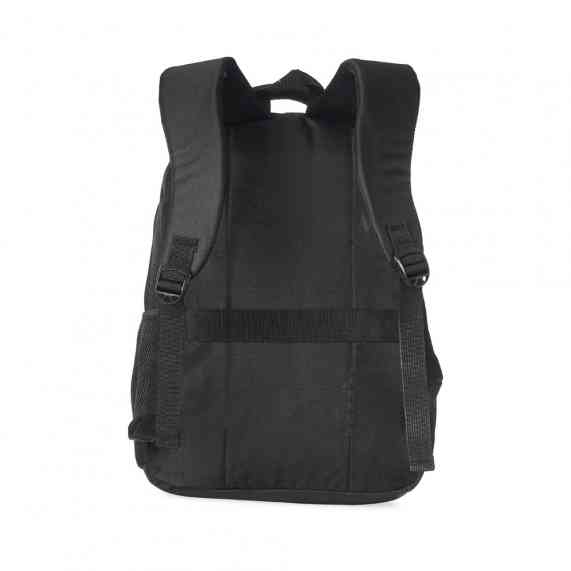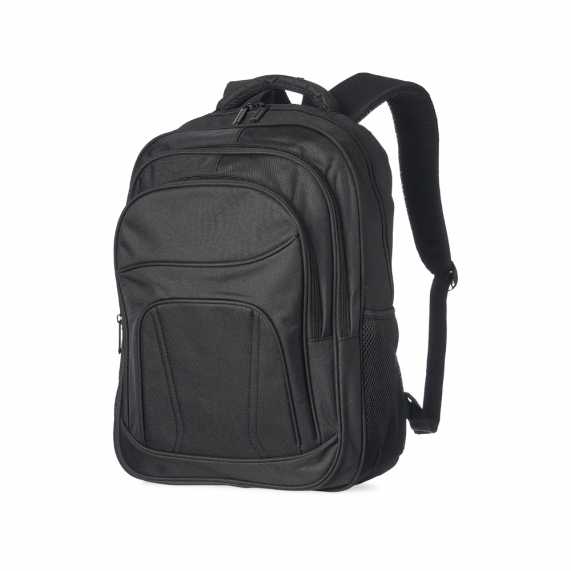 Mochila de nylon 30 litros com três compartimentos, sendo o principal com bolso para notebook 15,6.Com bolsos laterais telados, a mochila possui alça para encaixe em malas de viagem, duas alças de mãos e alças para as costas com revestimento espumado. Acompanha plaquinha metálica.