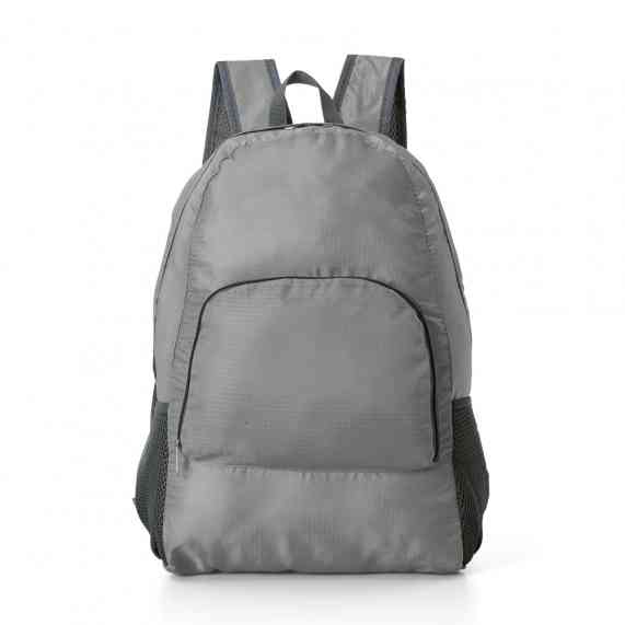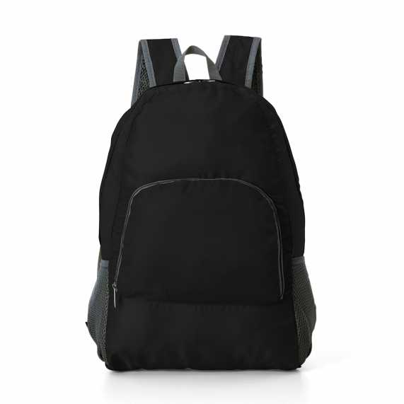Mochila dobrável de 21 litros confeccionada em nylon impermeável. Compacta e com abertura prática, possui compartimento principal com pequeno bolso interno, bolsos laterais em malha e bolso frontal – compartimento responsável por acomodar a mochila. Para armazenar a mochila no compartimento basta virar o bolso frontal do avesso e dobrar o tecido para melhor acomodação do material. O modo compacto possui uma alça em nylon para transporte, a mochila dispõe de alça de mão em nylon e alças ajustáveis para as costas com revestimento espumado.