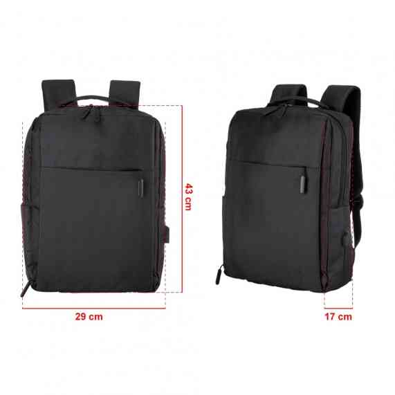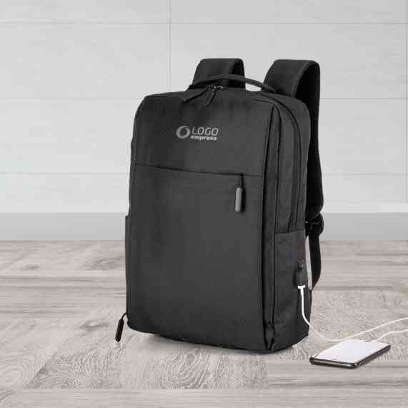 Mochila de nylon 21 litros com três compartimentos, sendo o principal com bolso para notebook 15,6. Com divisórias internas para acessórios, a mochila possui bolso lateral e suporte externo usb.
