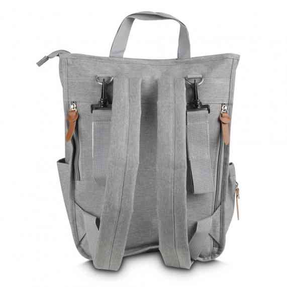 Mochila Multifuncional em poliéster com detalhes em PU. Possui alça de mão, alça para ombro e engate para carrinho de bebê. Conta com 2 bolsos laterais, 2 frontais com zíper e 2 compartimentos traseiros com zíper. O interior inclui divisórias, uma delas térmica, e uma divisória com zíper. Prática e versátil.