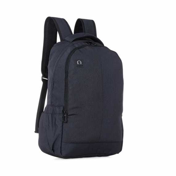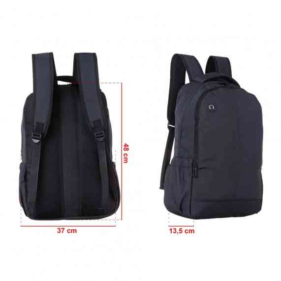 Mochila poliéster com compartimento para notebook. Possui um compartimento superior com bolso interno para notebook, segundo compartimento superior com divisórias internas para documentos e bolso de tela além de um saída interna para fones de ouvido e dois bolsos nas laterais. Alça de mão, alças ajustáveis para as costas revestidas com espuma e parte traseira também revestida com espuma para um maior conforto.