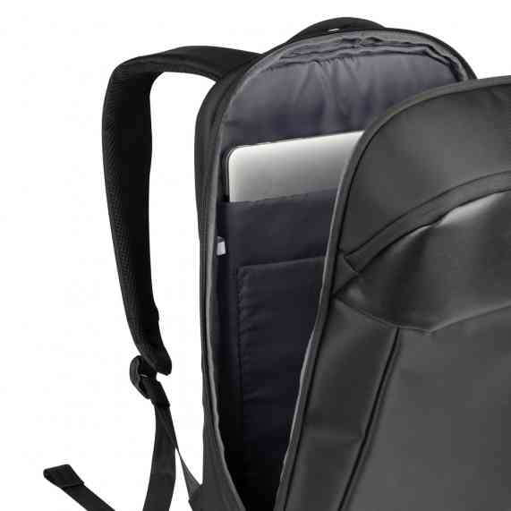 Mochila Premium, adequada para viagens de negócios, feito de tecido de poliéster, alças de ombro acolchoadas, aceita notebook de até 15,6”, porta USB na lateral, engate para mala de viagem.