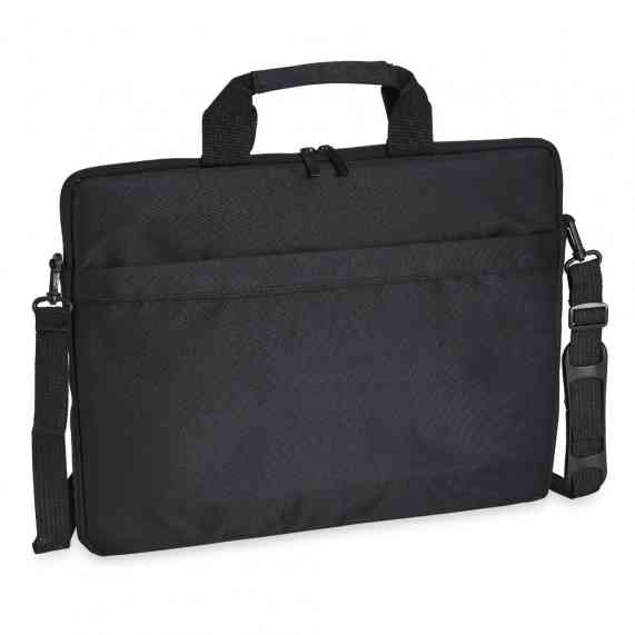 Pasta para notebook 15’6 em poliéster resistente à água com dois compartimentos, sendo o principal para notebook e o outro frontal. Contém interior forrado e almofadado, alça para encaixe em malas de viagem e acompanha alça transversal.