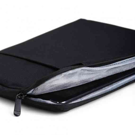 Pasta para tablet e notebook 12,4 em poliéster resistente à água com dois compartimentos e parte interna com estofamento aveludado.