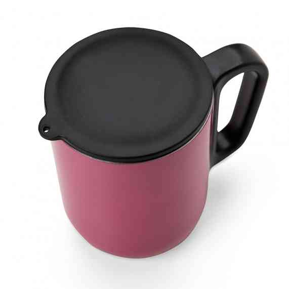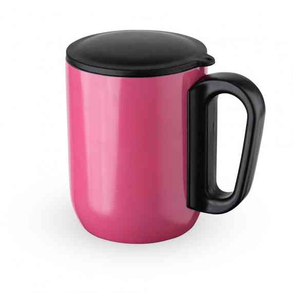 Caneca 230ml parede dupla em Inox, com pegador de plástico, contém tampa plástica para vedação e base com EVA antiderrapante.