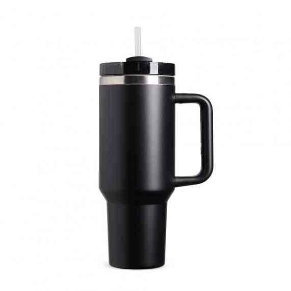 Caneca térmica com capacidade de 1,2 litros feita em inox 304 com parede dupla, contém tampa acrílica rosqueável com acesso para canudo e pegador plástico com aderência emborrachada. Acompanha canudo plástico.