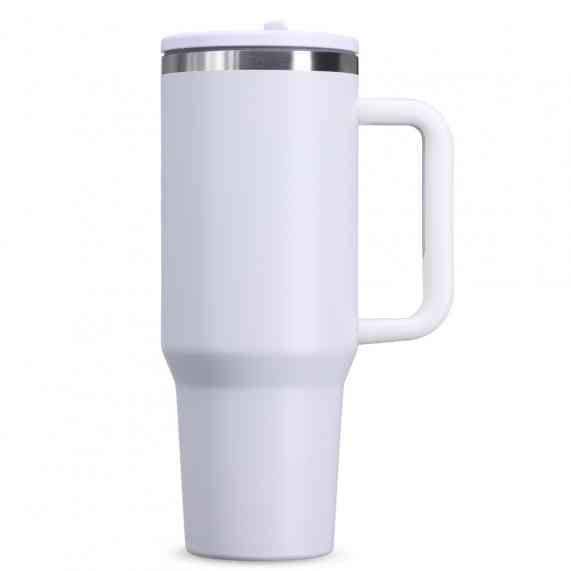 Caneca térmica com capacidade de 1,2 litros em inox 304 com parede dupla. Possui tampa acrílica rosqueável e bico flexível integrado para uso com o canudo. Conta com um prático pegador de plástico e acompanha canudo.