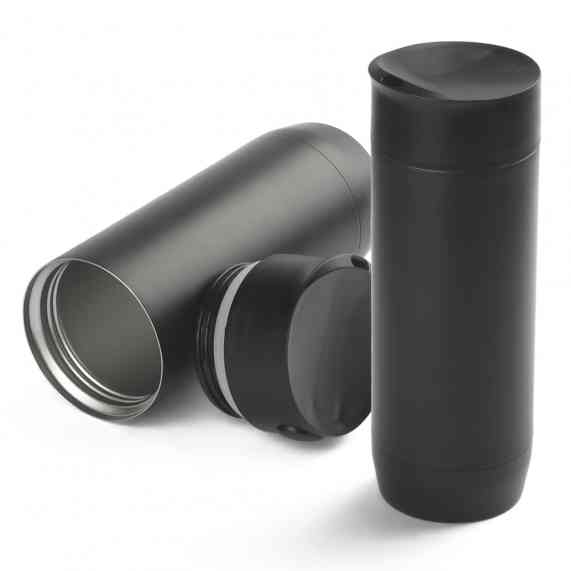 Caneca em aço inox com parede dupla isolada a vácuo com capacidadde de até 450ml. Conserva temperatura quente ou fria, tampa com rosca e anel de silicone para vedação.