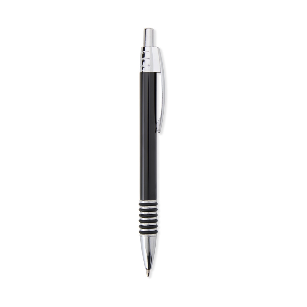 Elegante e confortável, esta caneta metálica traz um toque de sofisticação ao seu dia a dia. Com detalhes emborrachados que garantem firmeza e conforto na escrita, ela possui acionamento por clique e conta com uma carga esferográfica azul de 1.0mm, ideal para uma escrita suave e precisa.