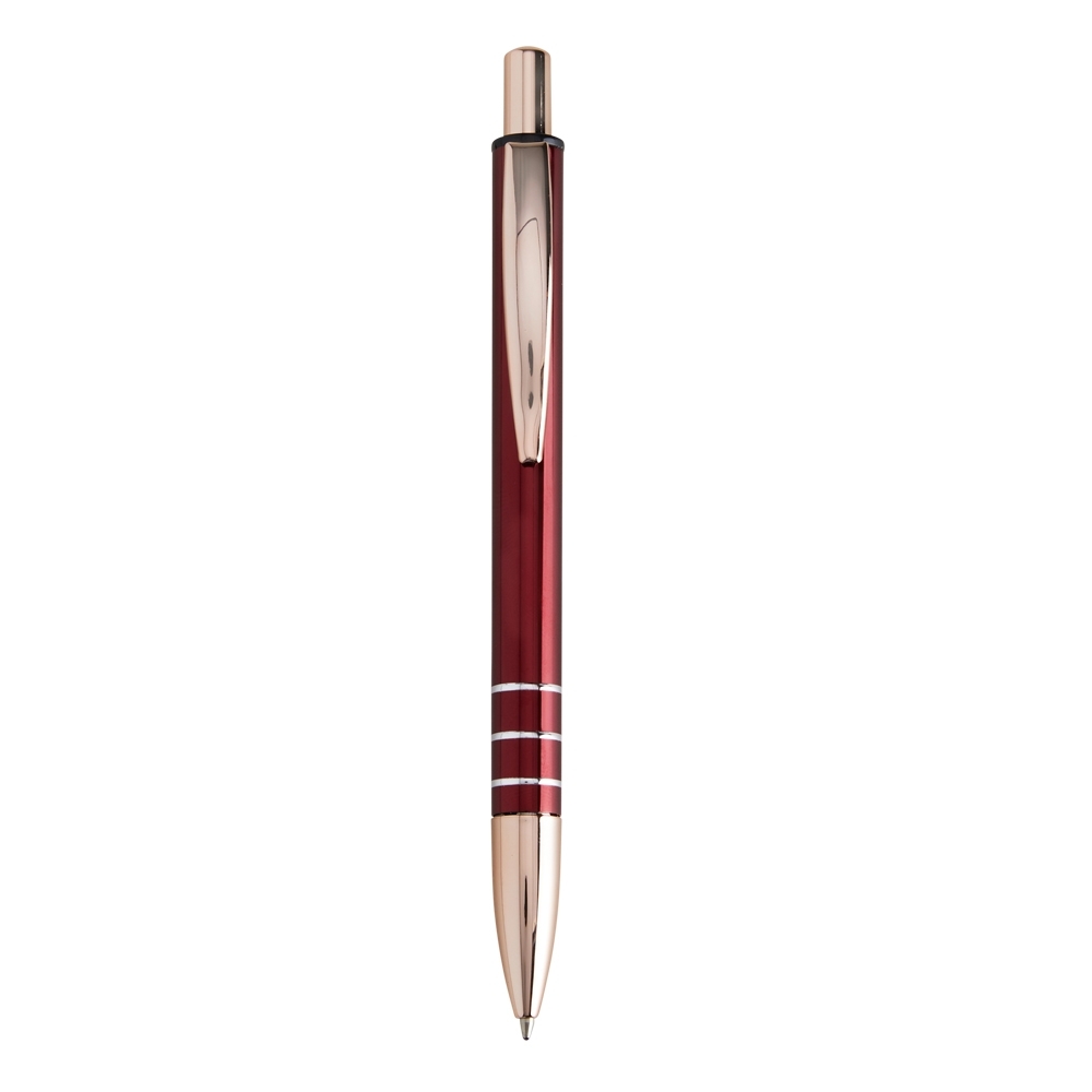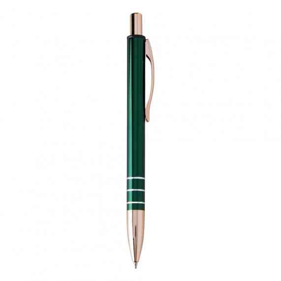 Caneta metálica com carga esferográfica azul 1.0mm e acionamento por clique.