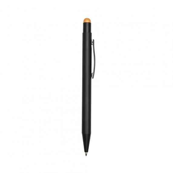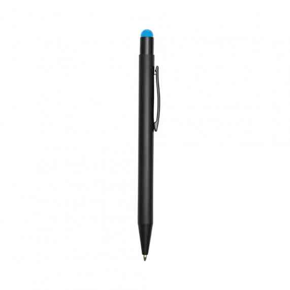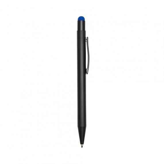 Caneta metálica com touch screen, carga esferográfica azul 1.0mm e acionamento por clique. Ao ser personalizada a laser, o corpo da caneta adotará a mesma cor da borracha touch, com a exceção da cor preta, que permanecerá em prata.