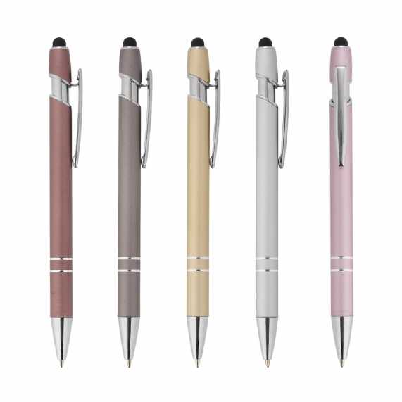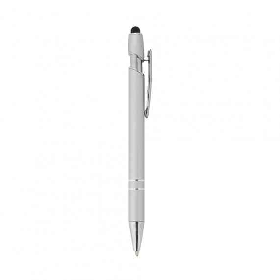 Caneta metálica touchscreen com acionamento por clique, carga esferográfica azul 1.0mm.