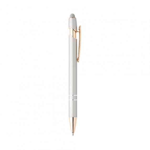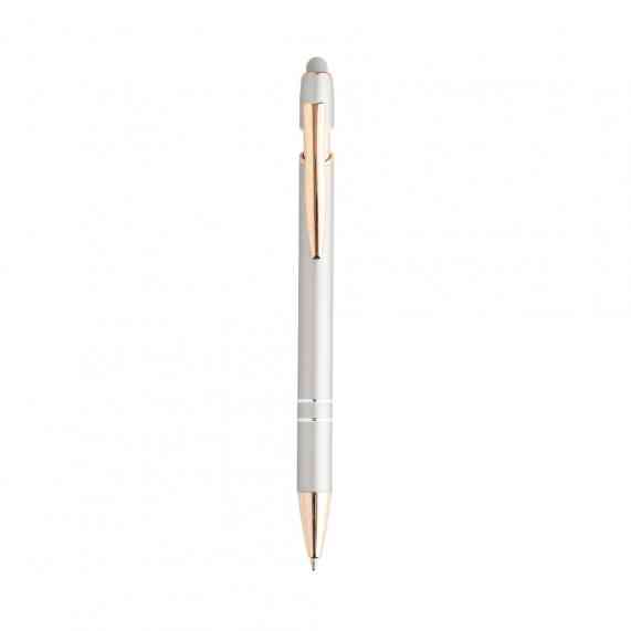 Caneta metálica touchscreen com acionamento por clique, carga esferográfica azul 1.0mm.