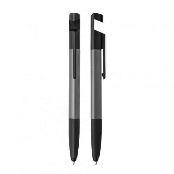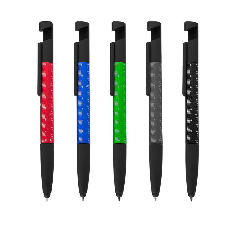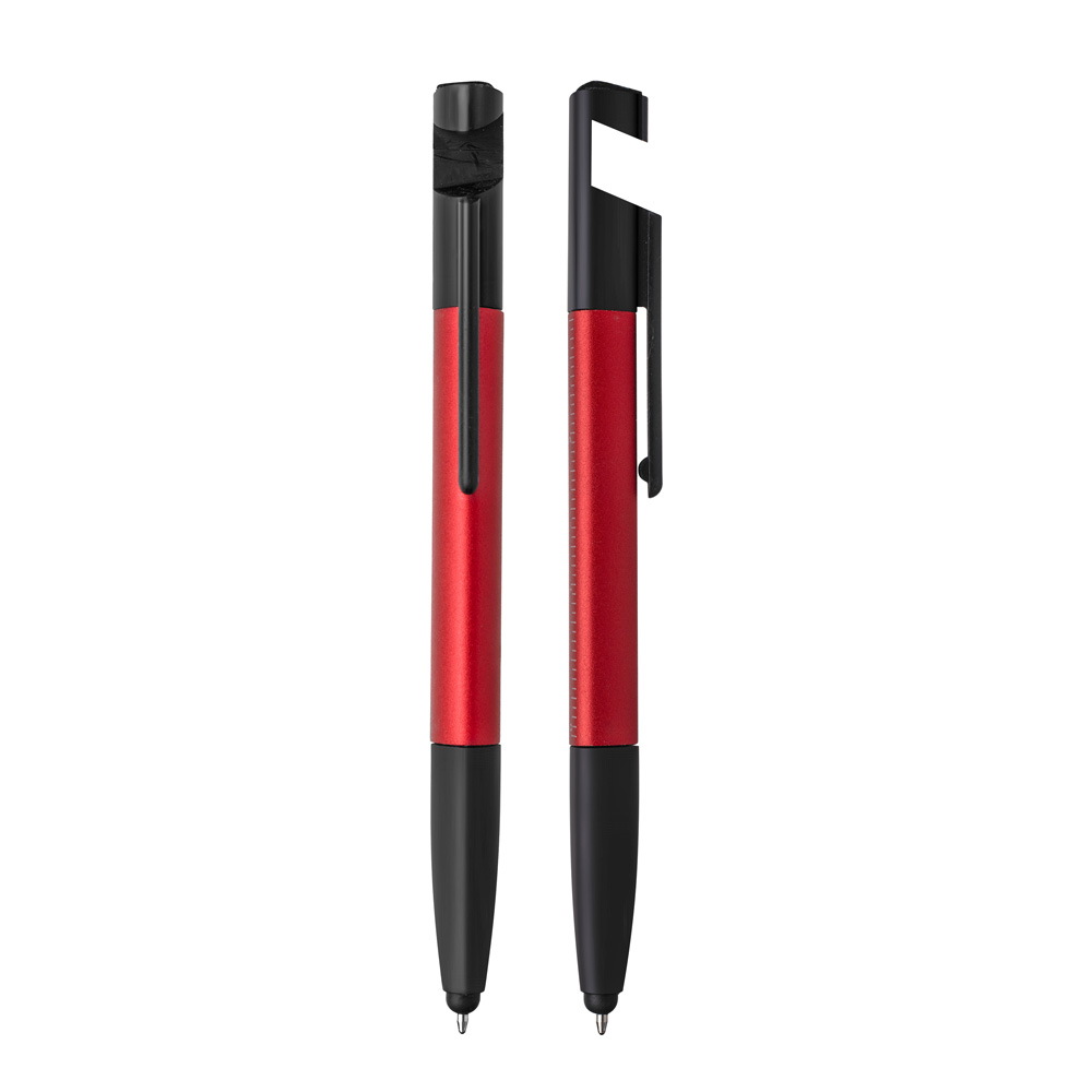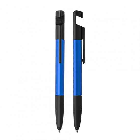 Caneta esferográfica em metal com ponta touch escrita em azul Ferramentas, apoio para smartphone Limpa tela e régua