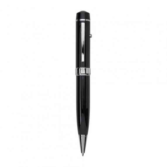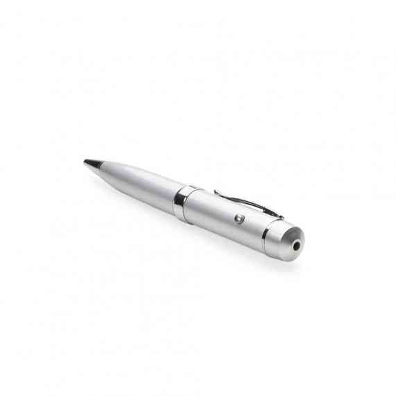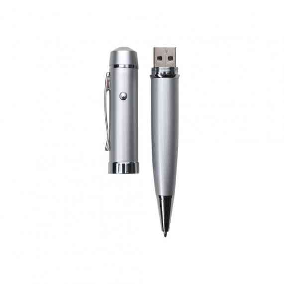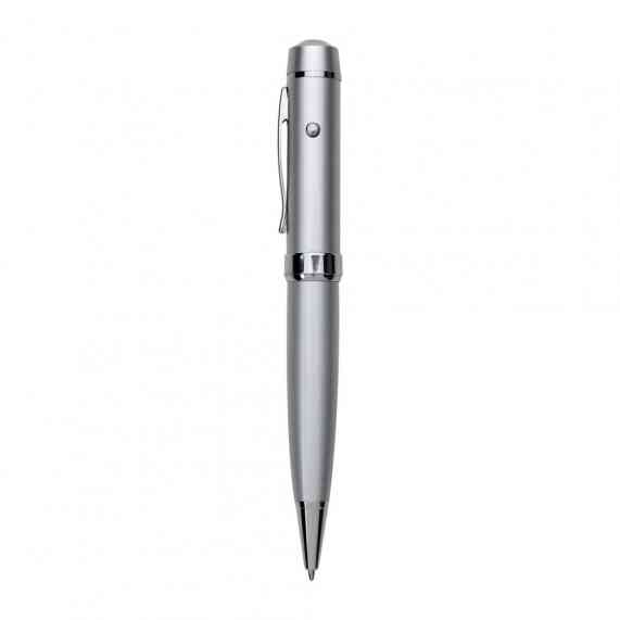 Caneta metálica pen drive 4GB/8GB com laser. Carga esferográfica azul. Acionamento por rotação.