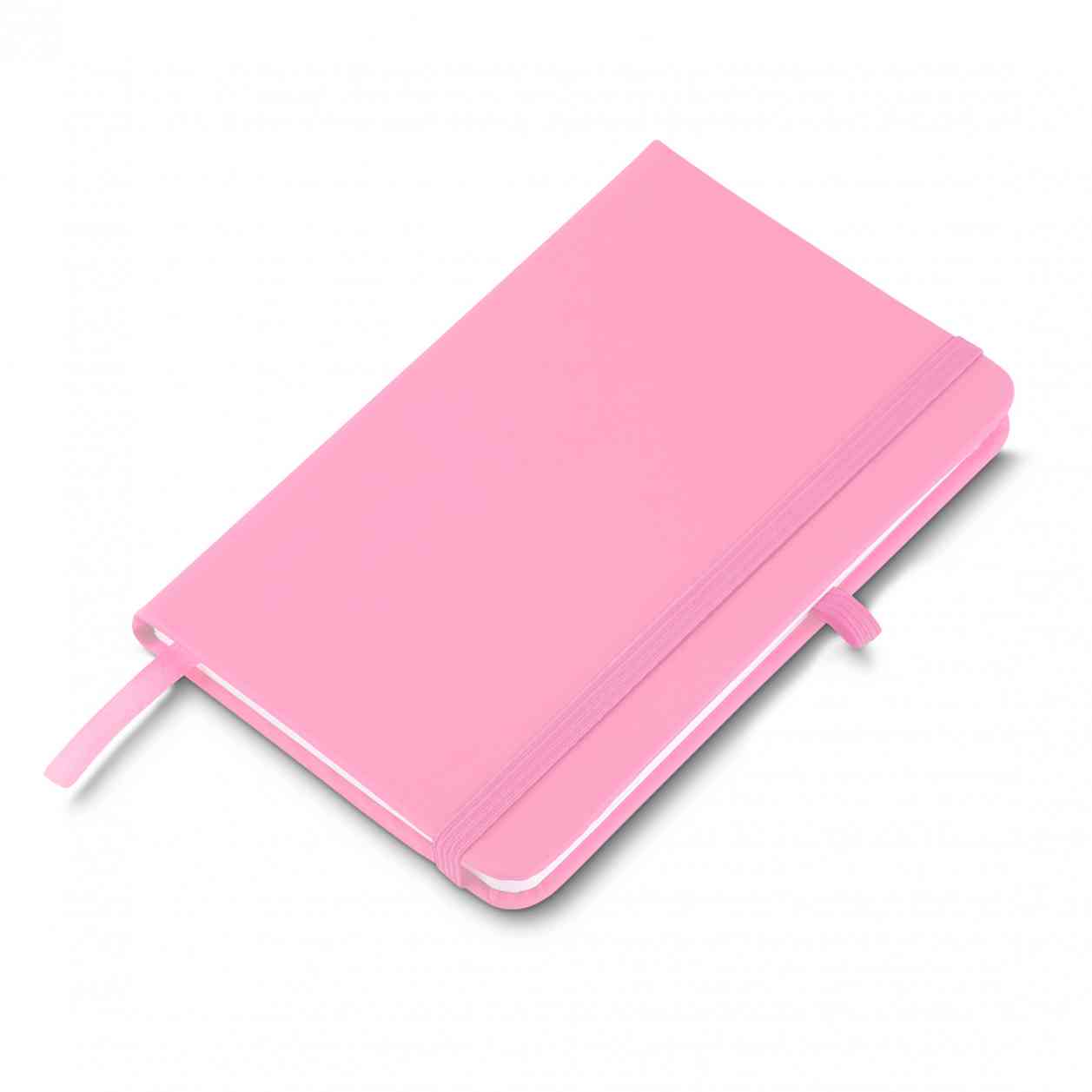 Caderno de anotações com elástico no tamanho A6 suporte para caneta, capa dura em material sintético, miolo 80 folhas pautadas cor bege.
