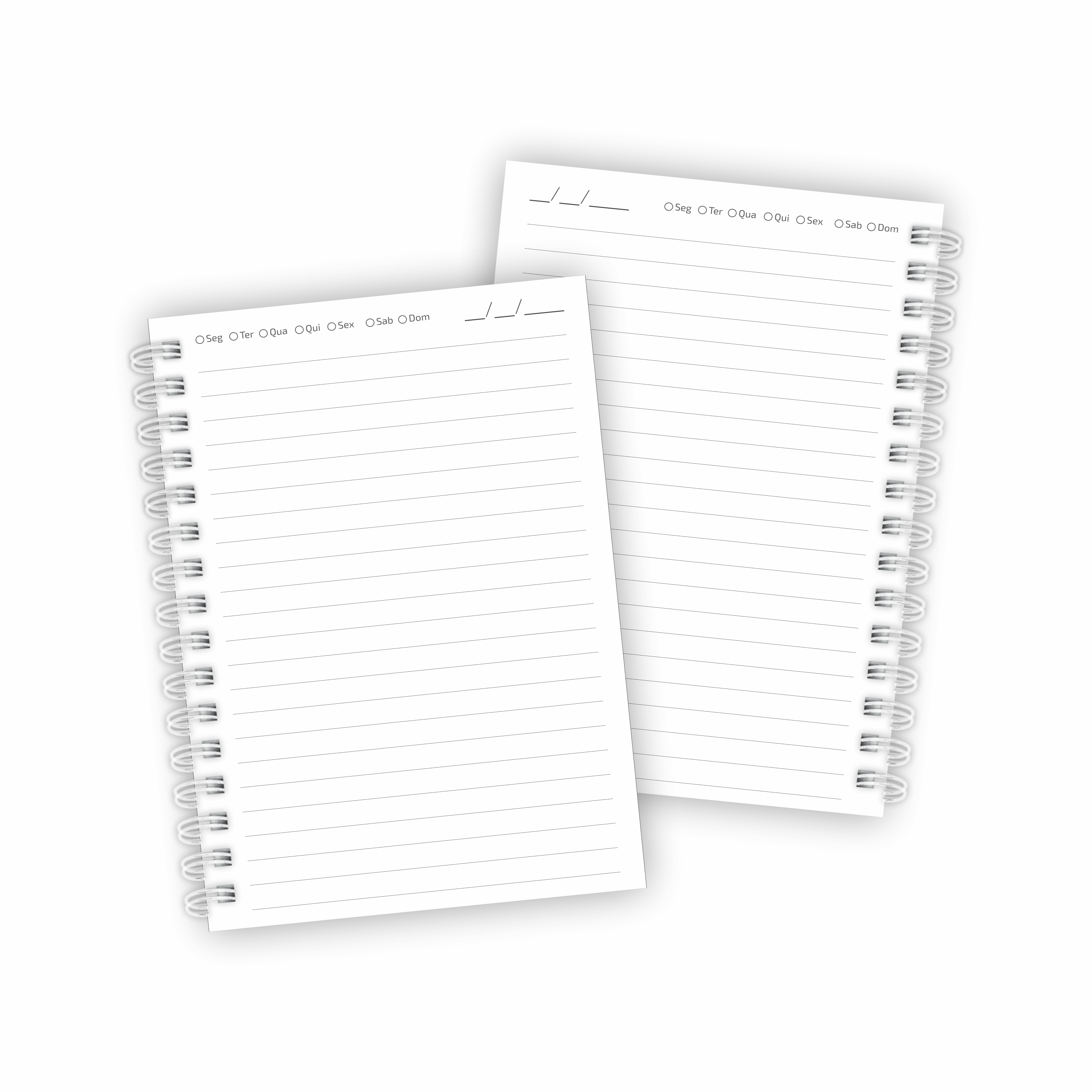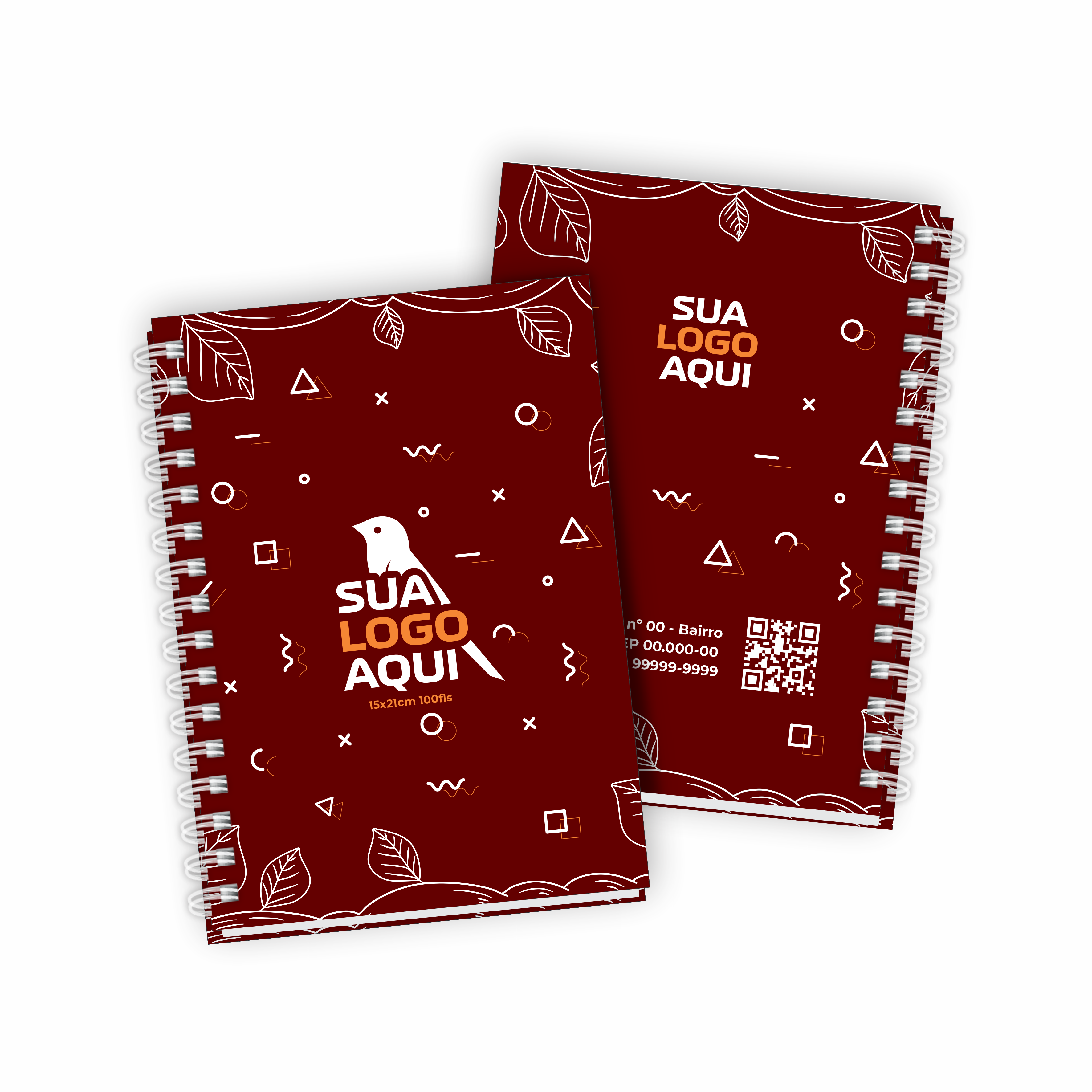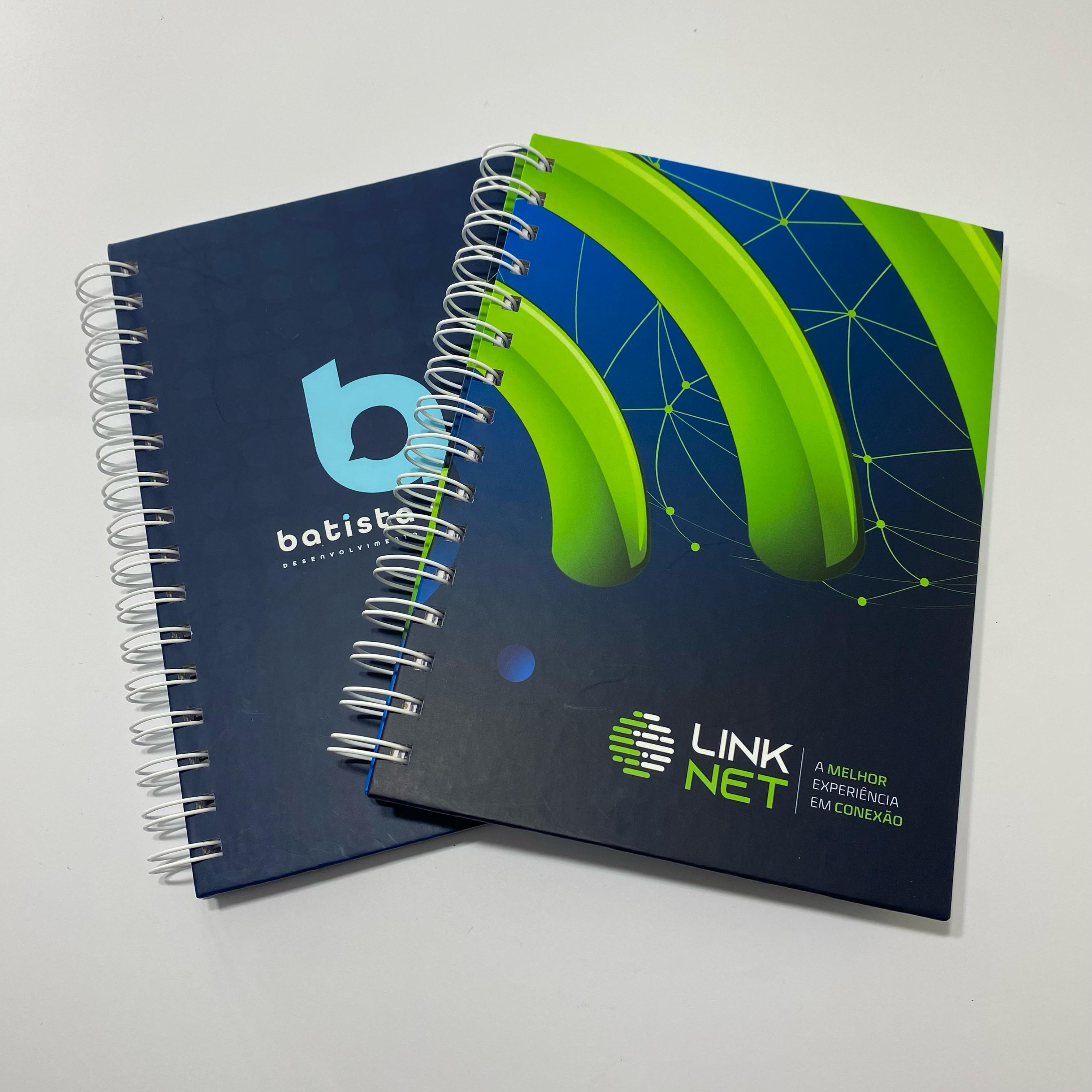A personalização é feita por completo na capa e contra-capa. Acima de 100 unid é feito a personalização interna no miolo do caderno.