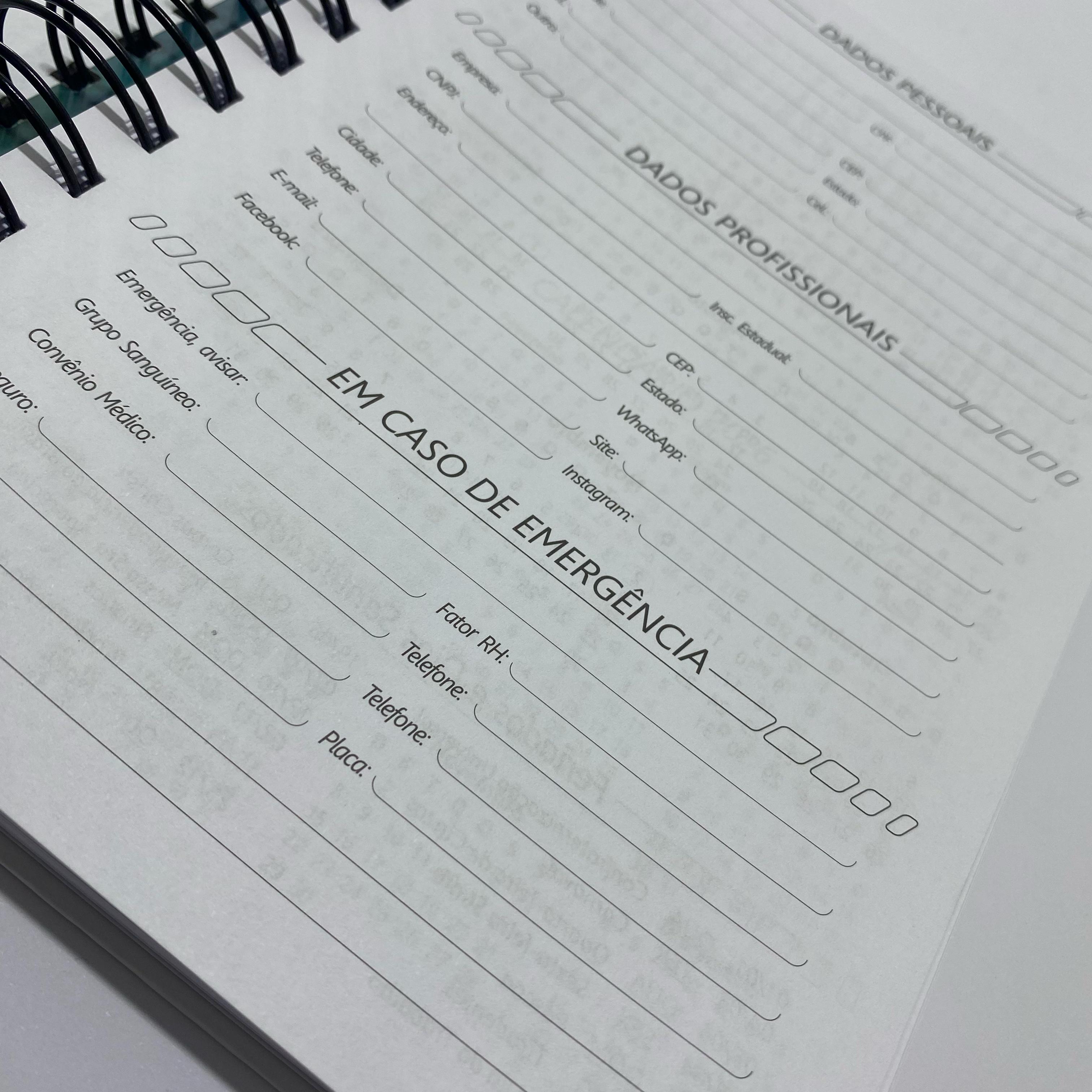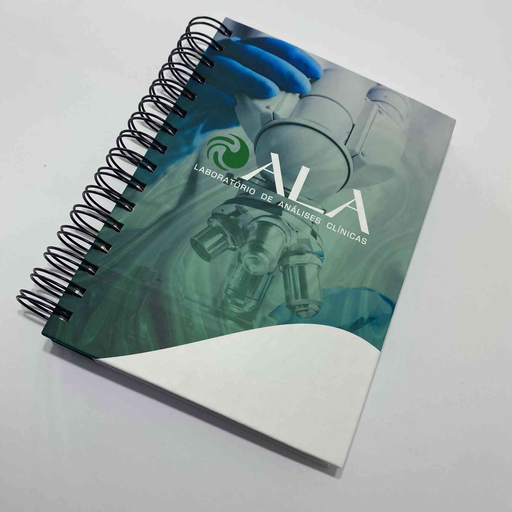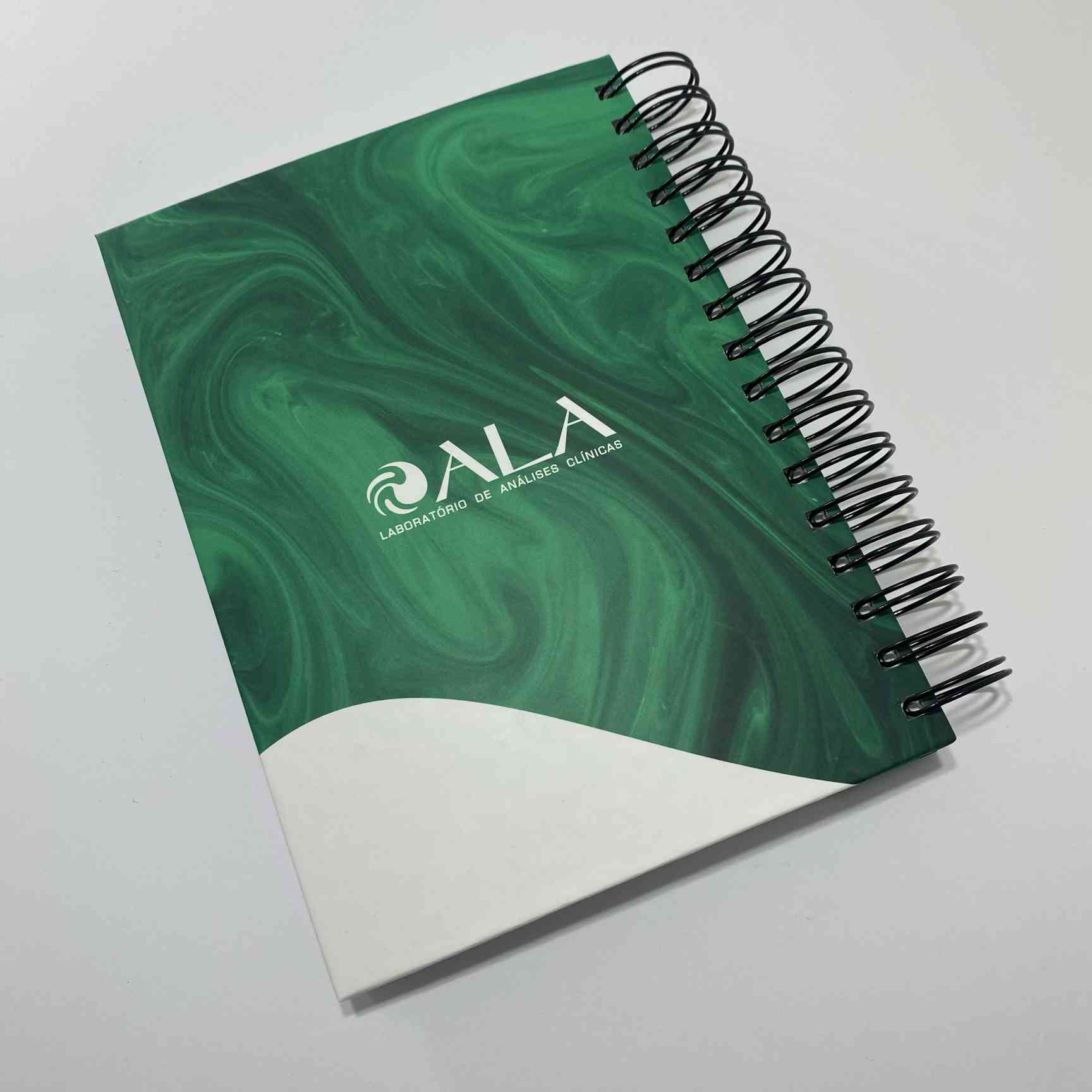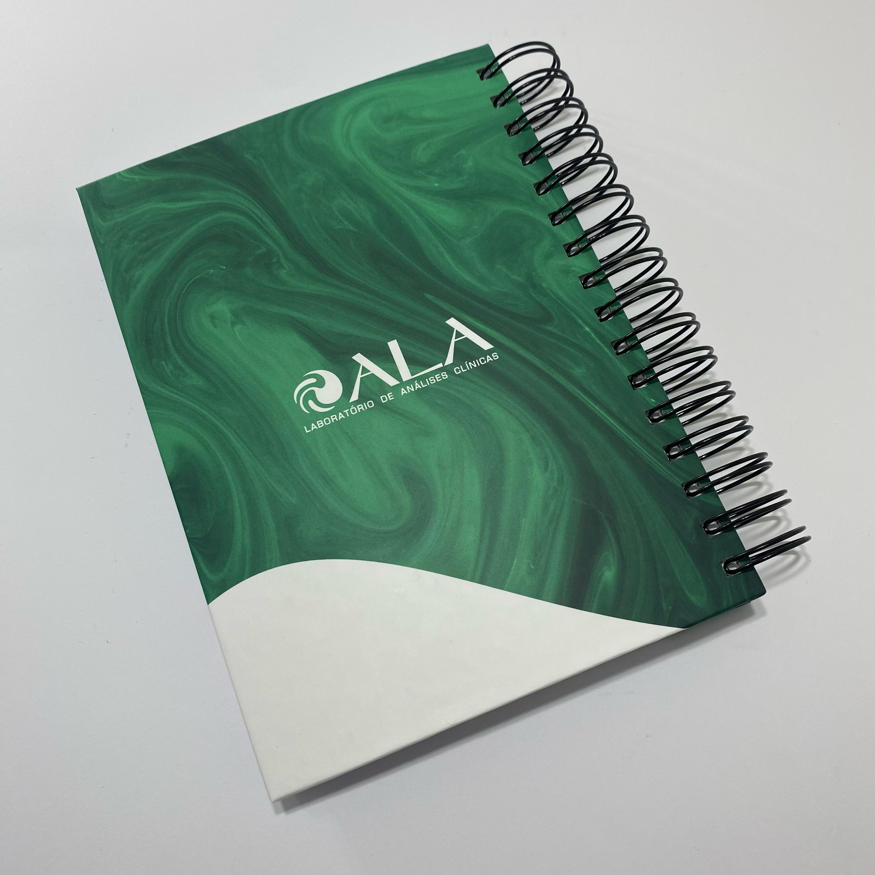 A personalização é feita por completo na capa e contra-capa. Acima de 100 unid é feito a personalização interna no miolo do caderno.