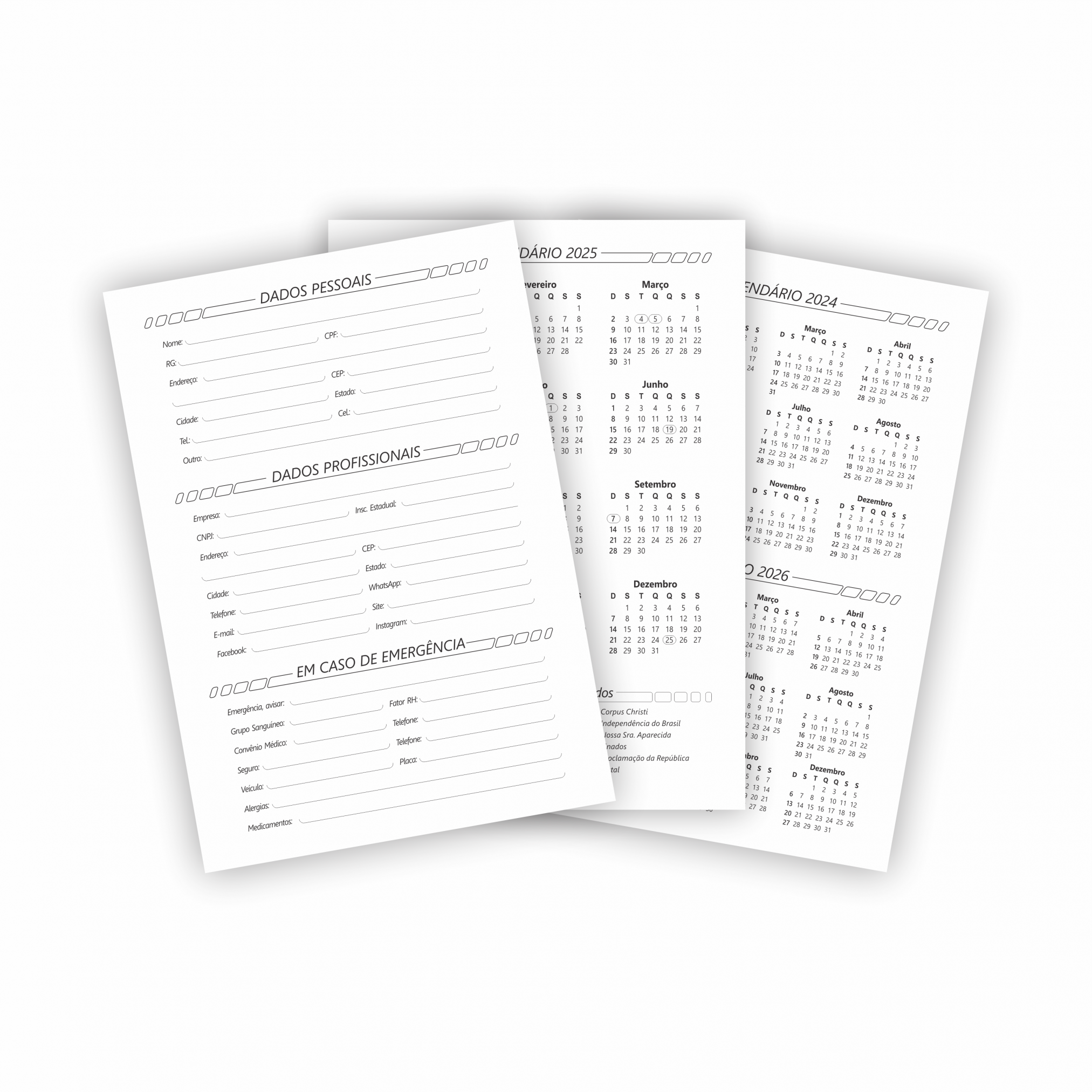 Adicionais: Dados pessoais, calendários ano atual e próximo