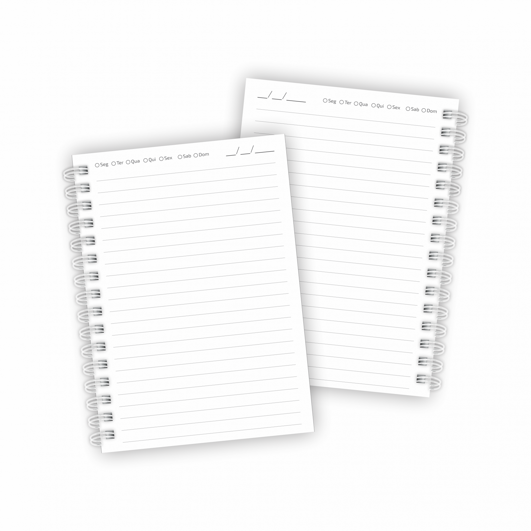 Pautado frente e verso, com espaço para data e dia da semana
