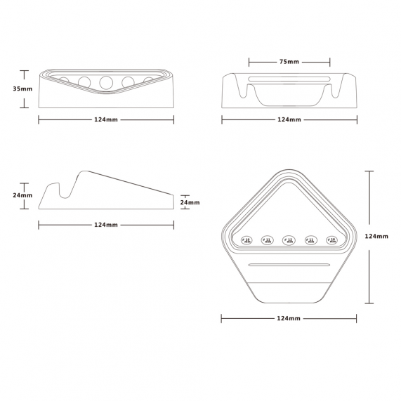 12,4 x 12,4 x 3,5cm (AxLxP)