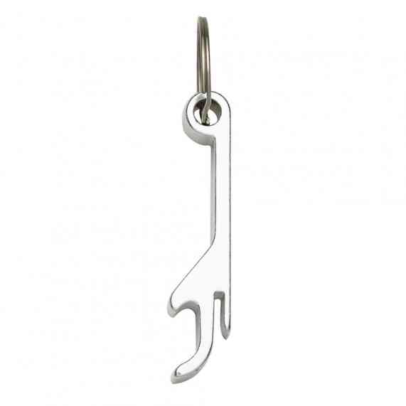 Chaveiro abridor de metal formato “pé de galinha”.