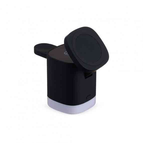 Carregador 3 em 1? A nossa base de carregamento é diferenciada, já que possui indução para relógio, fones e celular, e você pode usá-los todos ao mesmo tempo, basta que o celular e demais dispositivos tenham a tecnologia QI. O LED RGB possui 2 modos, luz branca e vermelho, verde e azul se alternando. A base não armazena energia, portanto, precisa estar conectada ao cabo tipo-C que a acompanha.