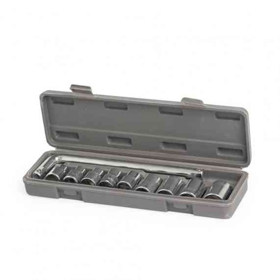 Kit ferramenta com 10 peças em estojo plástico. Contém: 1 chave L e 9 soquetes.