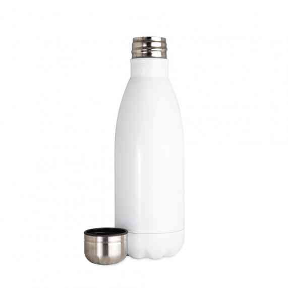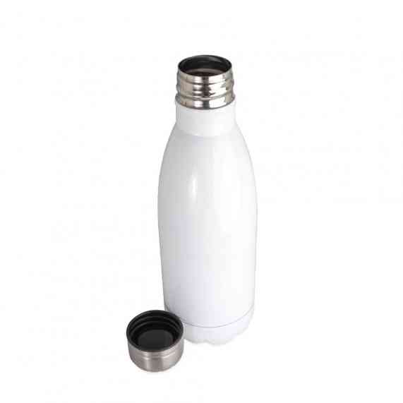 Garrafa 650ml em inox com tampa rosqueável e pintura brilhante. Obs.: Não é um modelo térmico.