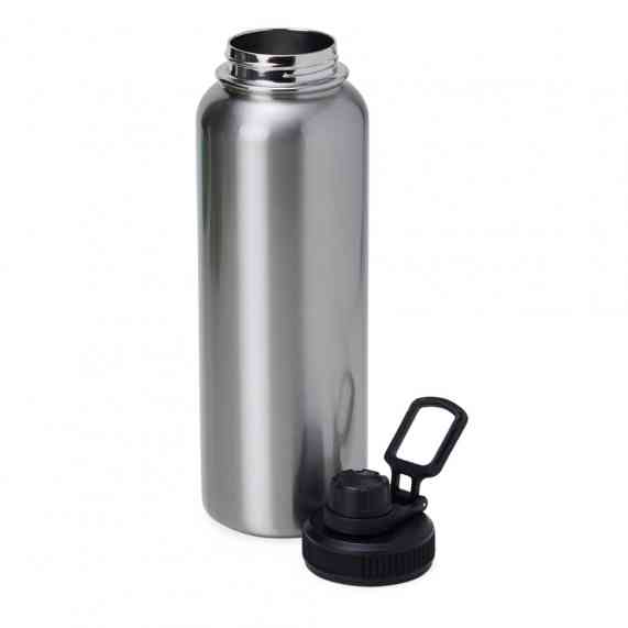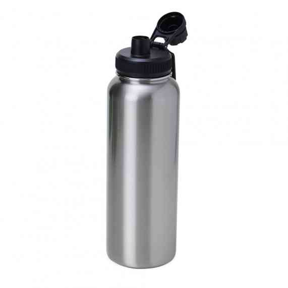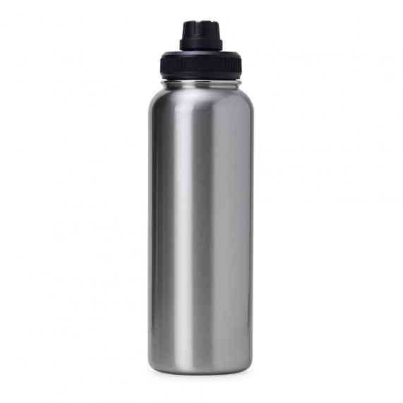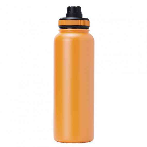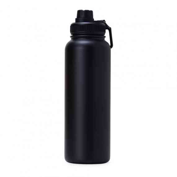Garrafa térmica feita em inox com parede dupla, capacidade de 1,2 litros. Tampa livre de BPA com alça para transporte e tampa de proteção para o bocal.