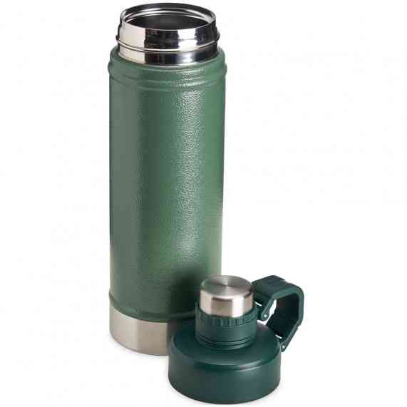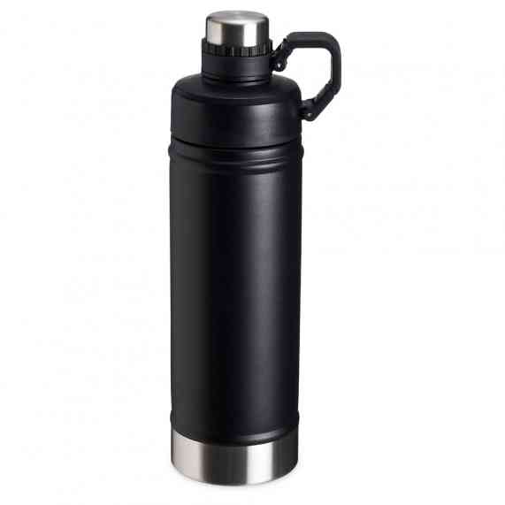 Garrafa térmica de parede dupla em inox, capacidade de 700ml. Tampa principal com bocal e tampa protetora com alça de transporte acoplada.