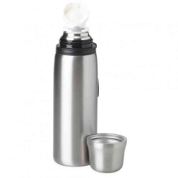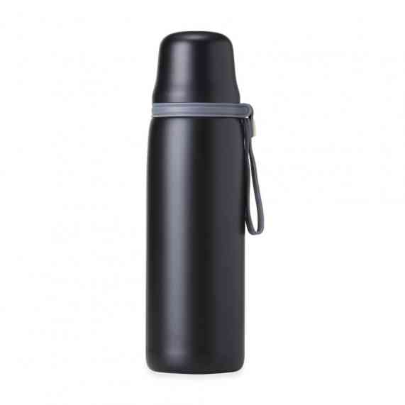 Garrafa térmica feita em inox 304 com parede dupla, capacidade de 850ml. Com alça emborrachada para transporte, a garrafa contém filtro infusor, tampa com botão de acionamento e tampa externa utilizável como copo.