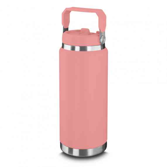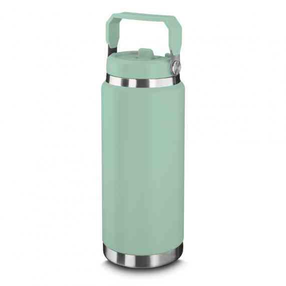 Garrafa térmica em aço inox com parede dupla com capacidade de até 900ml,tampa rosqueável com alça em plástico, permite-se hidratar por canudo ou bico,com e anel de silicone para vedação.