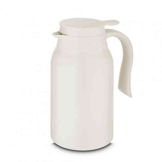 Garrafa Térmica com parede dupla em aço inox, alça e tampa plástica com vedação em silicone, possui sistema corta-pingo.