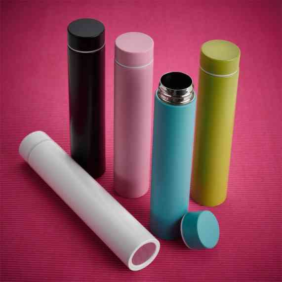 Garrafa térmica 275ml em inox com tampa rosqueável.