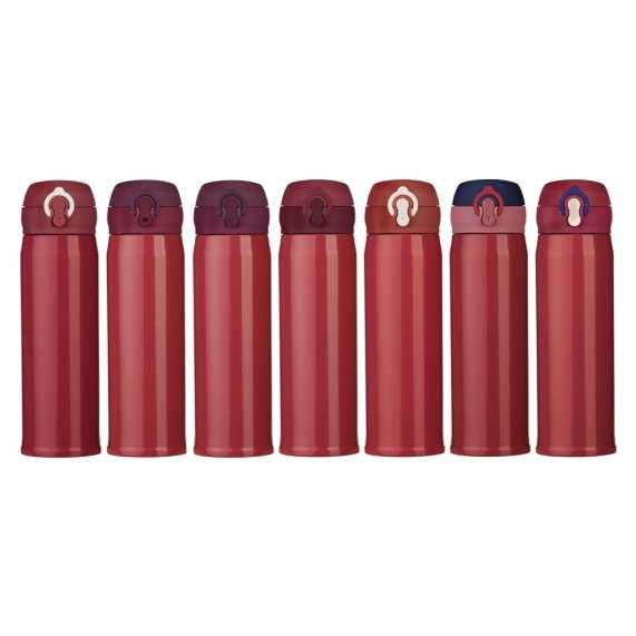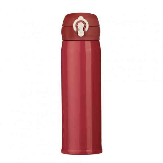 Garrafa térmica feita em inox com parede dupla, capacidade de 400ml. Tampa com trava de segurança e botão de acionamento.