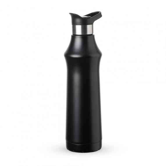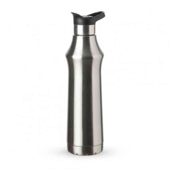 Descrição: Garrafa térmica 500ml em inox. Tampa plástica com alça para transporte e botão de acionamento (basta um clique para abrir ou fechar).